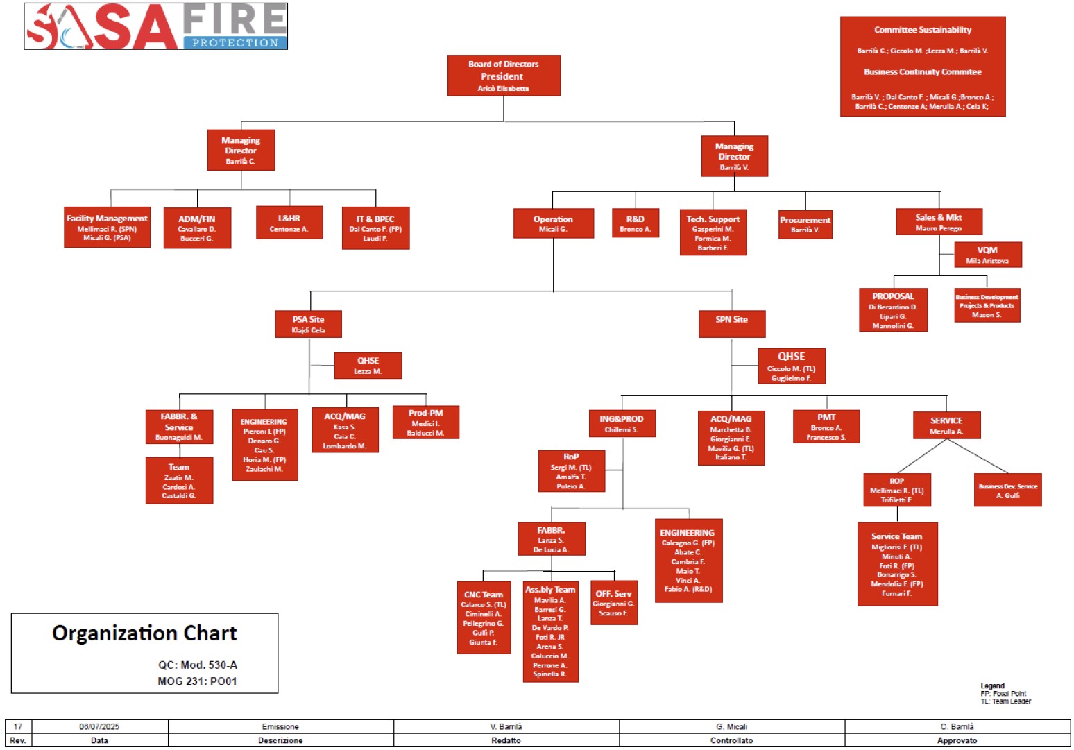 The administrative body of the Company SA FIRE PROTECTION S.R.L. has proposed and the Shareholders’ Meeting has thus approved this MODEL pursuant to Legislative Decree 231/01.